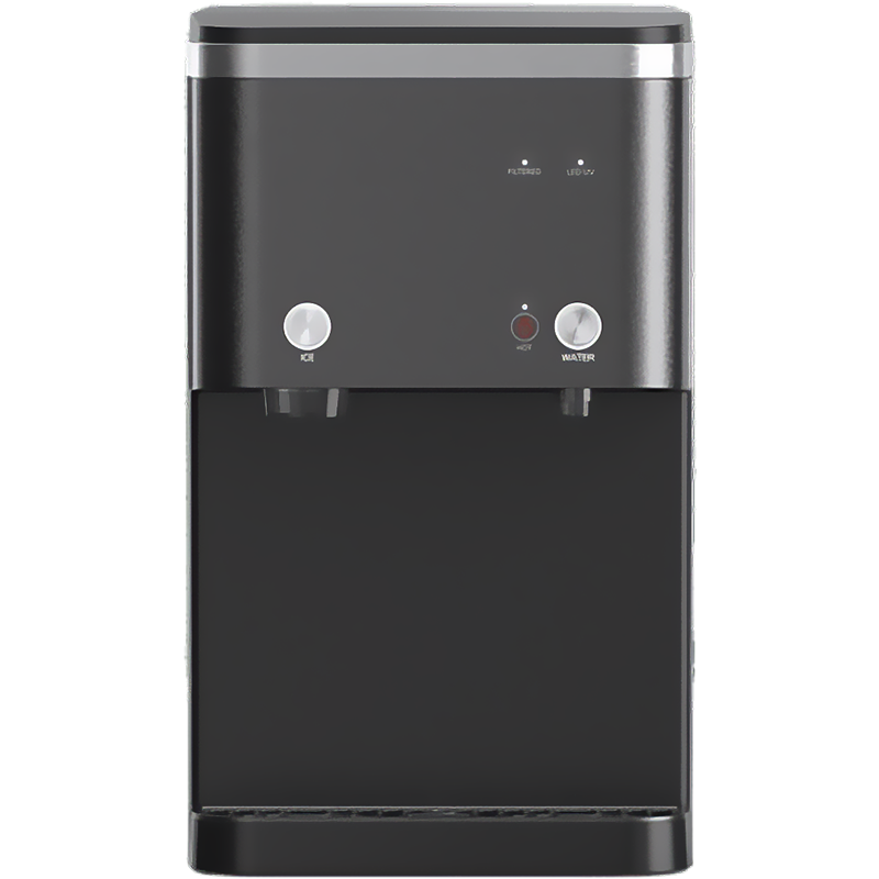 The i16 is designed with elegance to complement any workspace. This unit dispenses hot and ambient water and nugget-style ice. Taller than your average countertop unit, the i16 produces 165 lbs. of ice a day and is available with a base for a freestanding option.